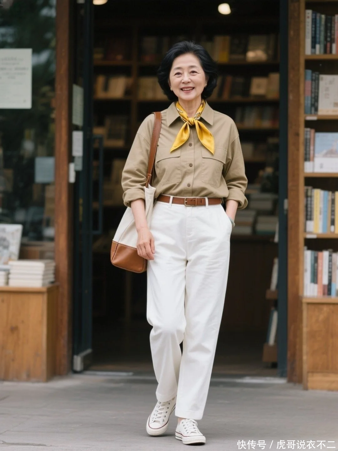 公式四:衬衫+阔腿裤/小白裤衬衫作为经典永不过时的实用款,在50岁女人的穿搭中发挥着重要作用。