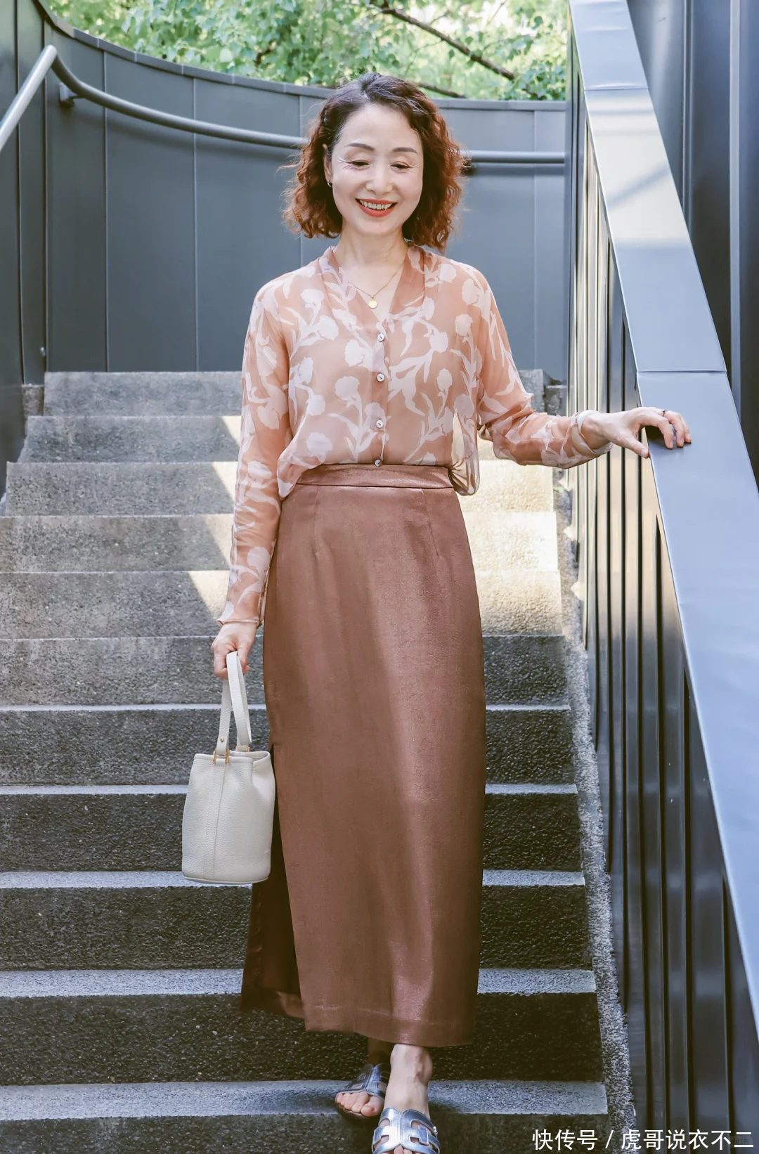 印花元素的衬衫往往更能体现减龄感,搭配纯色的半身裙金贝街,既时尚又优雅。另外,印花衬衫的底色如果可以与裙子同色,则会让整体气质更显高级,色彩搭配是一门学问,需要不断尝试哦!